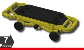 LEGO minifig compatible Custom Si-Dan Toys FB45 Ambulance Stretcher is fold-able with wheels and holds most standard size LEGO minifigures will fit on it. Great for carrying your wounded minifigs.