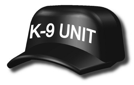 Lego minifig compatible Custom Si-Dan Toys dark Black Marine Cap with K-9 UNIT finely printed on front.