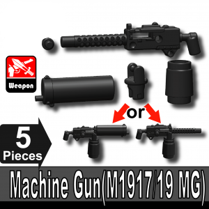 Loading... Please wait...LEGO minifigure compatible custom Sidan Toys M1917 or M1919 Browning Machine Gun. option to build either. The M1917 Browning machine gun is a heavy machine gun used by the United States armed forces in World War I, World War II, and the Korean War; it has also been used by other nations. It was a crew-served, belt-fed, water-cooled machine gun that served alongside the much lighter air-cooled Browning M1919. Build either one. Contains 5 pieces.