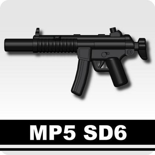 Lego minifig compatible Custom SI-Dan Toys MP5 SD6. This is a finely detailed model of the German Heckler and Koch MP5 SD6 a sound-suppressed variant of the MP5, designated the MP5SD (SD—Schalldämpfer, German for "sound suppressor"). A favorite of the SAS and other counter terrorist organizations.