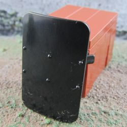 Lego minifig compatible Custom SI-Dan Toys N5 Riot Shield, fits into the hand of a minifigure via the removable hand grip at the back of the shield which also has a clip for attaching weapons etc. The N5 is great for police or SWAT or apoc type minifigures.