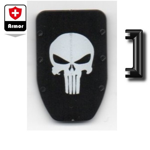 Loading... Please wait...Lego minifig compatible Custom SI-Dan Toys N& Bullet-Proof Shield with skull printed on front. Shield fits into the hand of a minifig via the hand grip at the back of the shield. This N7 is great for Sci-Fi or Apoc type minifigures.