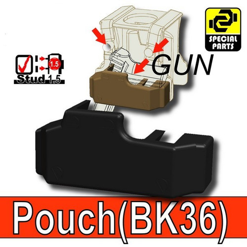 Loading... Please wait...Lego minifig compatible Custom SI-Dan Toys BK36 gun pouch for Special Tactical Vests. This is a specialty part to be used on the back of special Tactical Vests (sold separately such as the BS12 Tactical Vest) that can hold an assortment of pouches. This pouch is designed specifically to hold a gun.