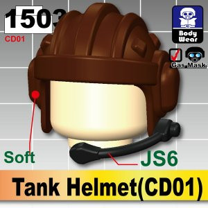 Lego minifig compatible Custom Sidan Toys Tank Helmet with JS6 headset. This is a classic Tank Helmet that is finely detailed. Soft Rubber helmet with Plastic headset.